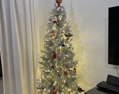 This Pre-Lit Artificial Silver Tinsel Xmas Tree exceeded all my expectations! The assembly was a breeze, with the sections fitting together easily and securely. The 790 branch tips create a full, realistic look, and the shimmering silver tinsel makes the tree shine even before I add any ornaments. The built-in 300 LED lights are a game-changer―they're bright, energy-efficient, and give off a beautiful glow that makes the tree look magical at night.
