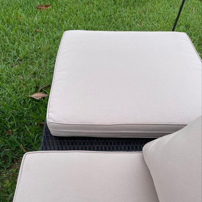 The set is a lot shorter than expected. The pillows don’t stay put. They are flimsy so when you sit the cushion moves. Could be a nice set but the moving cushions is a a huge disappointment.