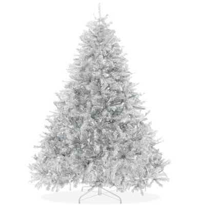 Costway 7.5Ft Hinged Unlit Artificial Tinsel Christmas Tree Holiday,Silver ,Gold