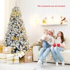 This is our brand new 6/7.5/9 ft Christmas tree which is designed with 600/1010/1498 branch tips and snow flocked leaves to offer an elegant and lush appearance. Simple Christmas tree allows you to decorate it freely with Christmas stockings, colored balls, lights or other ornaments according to your own preferences. It is effortless to make the tree fluff due to its hinged construction, while also facilitating its assemble and storage. Foldable X-shaped iron stand with foot pads prevents breakage and enhances the balance of the tree, providing stability to keep the wondrous Christmas tree standing all year around. Whether for your home, courtyard, or for commercial places like shops, hotels, the snow flocked tree is the perfect eye-catching decoration to add multiple fun and Christmas flavor to your life!