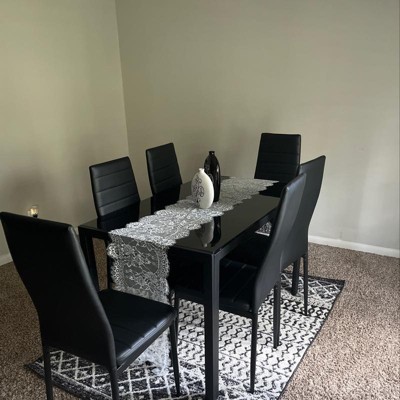 This Is Our Modern And Beautiful Dining Table Which Combines Quality And Style Into One And Serves The Idea Of Simplicity And Contemporary Living. It Includes One Tempered Glass Top Table And 6 PVC Leather Chairs That Makes It Looks Fantastic In Any Dining Room. There Is No Doubt To Say That Such An Elegant Addition And Suit Any Décor Style Dining Room With The Black Colors. The Soft Cushions And Backrests Make For An Enjoyable Seat. These Stylish Dining Chairs Fit Anywhere, Leaving You A Comfort Sitting And You Will Make Full Use Of Them.Don’t Miss It Out If U Are Looking At It!