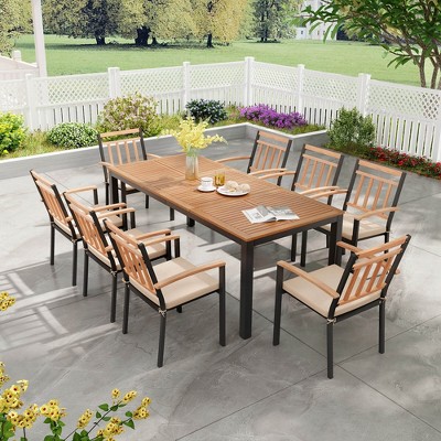 Reserved Umbrella Hole: The spacious dining table features a 2" umbrella hole, so that you can add a patio umbrella for shaded dining on sunny days. Note: The patio umbrella is not included and the umbrella base is needed.
