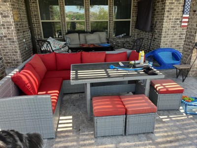 - Free Combination & Modern Design: Including 3 corner chairs, 3 ottomans and 1 table, this rattan sofa set provides enough space for gatherings of family or friends and can be easily changed to different layouts based on your needs. More, this simple yet stylish sofa set can match well with any outdoor spaces including garden, patio, poolside, etc.