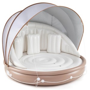 - 【Retractable & Removable Sunshade】 Crafted from premium silver-coated fabric with SPF 50+ protection, this floating island's retractable canopy offers ultimate sun protection. When you're ready to soak up the sun, simply remove the canopy for a seamless transition to sunbathing mode.