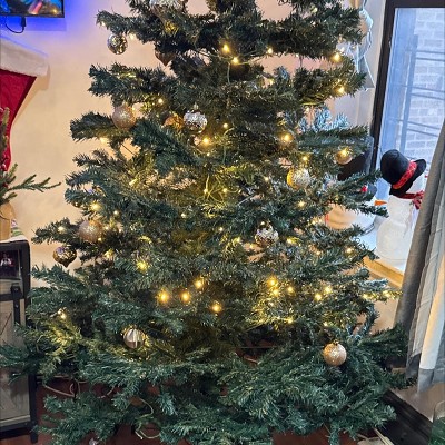 Do not buy this tree! It looks nothing like the picture that you see. It’s dark green not the light green in the picture and it has HUGE GAPS! I call this false advertising. I bought this tree on line in October 2025 because Target was running a sale on them. Went to put it up in November, realized it’s not the same tree. Tried to return it and the window time had expired. Target will not honor a return. Shame on them.