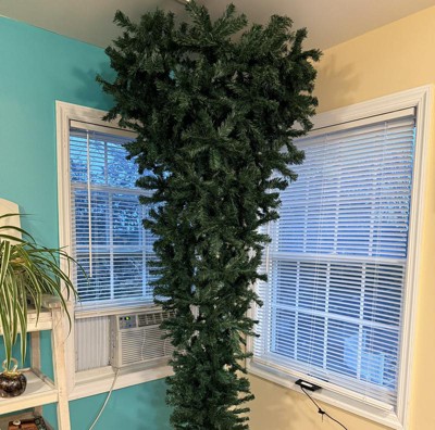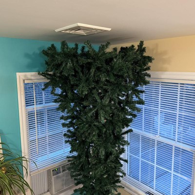 Wonderful tree when you want to flip expectations upside down. Stable and great for fitting tons of presents since it’s small at the bottom. No need to attach anything to the ceiling, just has a base like most trees. It was 3 or 4 pieces, took some time to fluff it out but that’s the same as any tree.