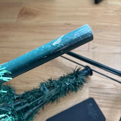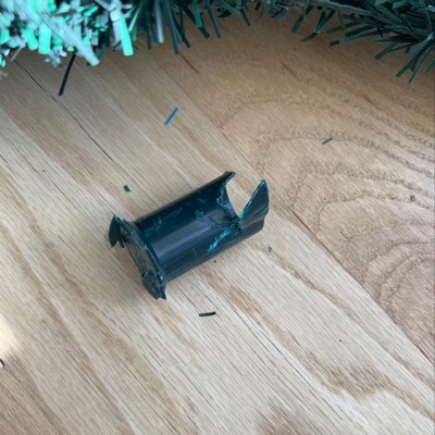 When I opened the box I immediately noticed the cap was not on one of the branches that looked like hair was on the bottom. As I continued to remove the tree the first branch cap was stuck like it had been glued on. I had to pri-open with scissors and a hammer. Also, the quality of the branches are not like a regular Christmas tree, the branches seem to be made of green paper that shed every where.