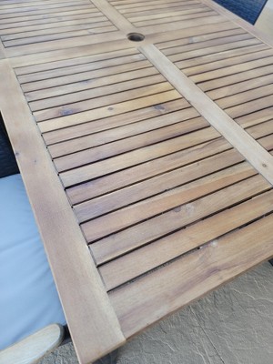 Like: It's a beautiful table set. It came in 3 boxes two days apart. The wood was extremely dry when I opened it so I immediately conditioned it with some raw coconut oil to keep it from cracking. I didn't have any wood conditioner so I figured a natural oil would work and it did. After assembling the six chairs I did go purchase some valspar exterior wood stain and sealer and brushed it on all the wood areas on the chairs including the entire table because I was sure that after placing them outside it would not last without it. Especially after reading the reviews I just didn't trust it due to it being real wood. It came out beautiful and didn't take long at all. I'm really not sure about the longevity of the wicker but it's ok for now. I'll have to find something I can seal it with. Dislikes: There is some cracking in certain areas of the wood but as I said before I did go out and purchased a good wood sealer. Also, as everyone else has said the screw holes didn't really line up but the chairs weren't a big issue for me I actually finished them pretty fast and I did everything by myself. It was once I started to assemble the table underneath the instructions were not very clear and once again there were no screw holes in certain areas which made it time consuming and frustrating. After everything I really do like my table set I just hope it lasts at least a few years but I do plan on purchasing a cover it for extra protection when it's not in use