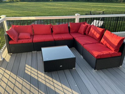 - 7 Piece Sectional Sofa Set: The patio sectional sofa set includes 4 armless sofas, 2 corner sofas and 1 coffee table, which provide plenty of seats for enjoying leisure time with your friends. Because the sofas are individual, you can you can freely combine them according to your needs. We prepare furniture clips to prevent your wicker furniture from sliding.