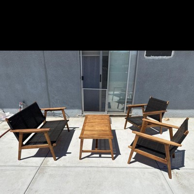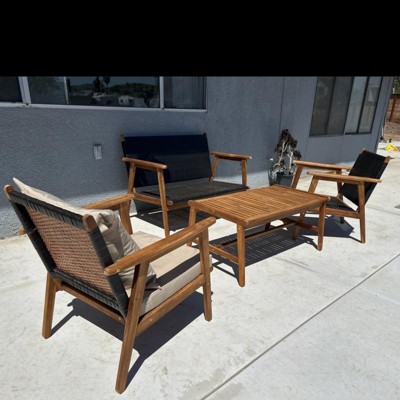 I love the overall look, however the arm chairs have already started to come untied/undone and that bothers me because it’s only been out of the box 7 days. Comfortable to sit, a little on the small side. Cushions are comfortable too. Not pictured in my photos sorry!