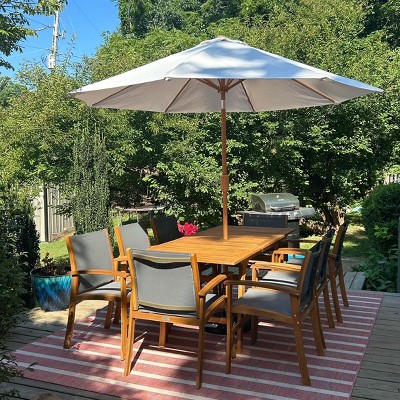 Costway 9 PCS Acacia Wood Outdoor Dining Set for 6-8 with 1.97" Umbrella Hole