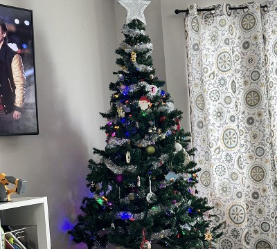 Terrible tree. So many empty spots even after fluffy. A couple of the branches came off after pulling out of box. Do not listen to the 5 star reviews.