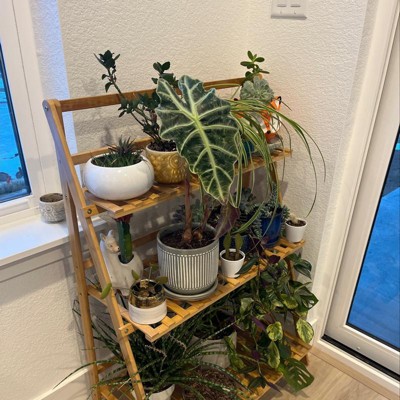 - Large Storage Capacity: This ladder plant stand features 3-tier large open shelves, which gives you plenty of room to display a variety of potted plants. It helps you organize messy plants and maximizes your space. Thanks to the unique vertical design, all plants get enough sunlight for growth.