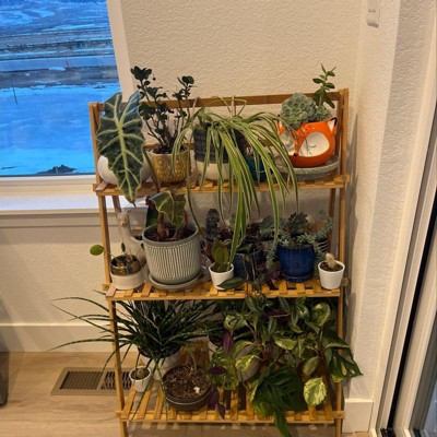 I got this on sale and am pleasantly surprised. It’s sturdy for all my potted plants without taking up too much space. I like the natural tone of the wood too. I’m really happy with this one.
