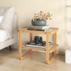 Costway Bamboo Side Table with Rattan Shelf Glass Top Nightstand Small Sofa End Table