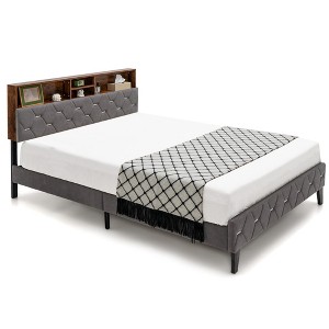 Costway Bed Frame Upholstered Platform Mattress Foundation with Storage Headboard - 2 of 4Costway Bed Frame Upholstered Platform Mattress Foundation with Storage Headboard - 3 of 4Costway Bed Frame Upholstered Platform Mattress Foundation with Storage Headboard - 4 of 4