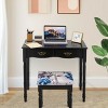 Costway Black Tri Folding Mirror Vanity Makeup Table Stool 4 Drawers