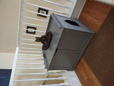 This litter cabinet is so cute. Perfect size and looks great. Pretty easy to assemble but the doors were hard to put on. I actually put one on crooked. But still love it. Just gives it a little more character.