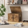 - Barn Doors & Rustic Charm: Boasting barn doors for easy access, the pet crate furniture allows you to clean the litter box with ease and adds a touch of sophistication to your living space. Plus, the wood-like surface exudes timeless elegance, elevating the aesthetic appeal of your home.Additionally, the arched side and inner entrances promote good ventilation, allowing your cat to enjoy fresh air freely while ensuring easy access. Featuring a double door design, the farmhouse pet house simplifies the cleaning process of the litter box. Meanwhile, the rustic barn doors add the overall appeal of the indoor cat house.