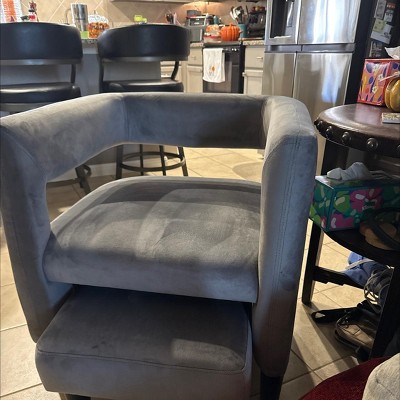 Costway Comfy Accent Armchair with Footrest Upholstered Velvet Barrel Chair & Ottoman Set Dark Grey/Beige
