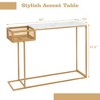 Costway Console Table Faux Narrow Marble Entryway Sofa Table with Storage Wire Basket