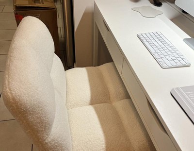 Cozy, cute chair that is very comfortable for my long days working from home. I can sit more comfortably and get cozy in this huge chair, and it looks great in my space. The screws for attaching the back of the chair to the seat were a bit tricky, but you just have to line them up, screw them in and trust the process. Once you start to screw them into the seat, you will see it line up and it will attach properly, but it might seem like it won't when you first start. I feel like this may help others. Don't give up on it or think it's defective, just trust the process! You'll be glad you did. It really is a great chair!