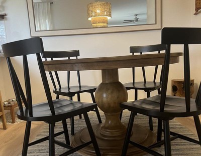 Exactly what I was looking for! Solid wood, feels heavy and durable and a west elm/pottery barn look on a budget. Hope they last a long time. Was initially worried about there being less back rods than the standard chair this size but they are thicker in diameter and feel strong. Arrived early and packed well. Only negatives to consider is dust will fall and be visible on these since they’re black and they are only sold in sets of 2 so if you need an odd number you’re forced to get an extra.