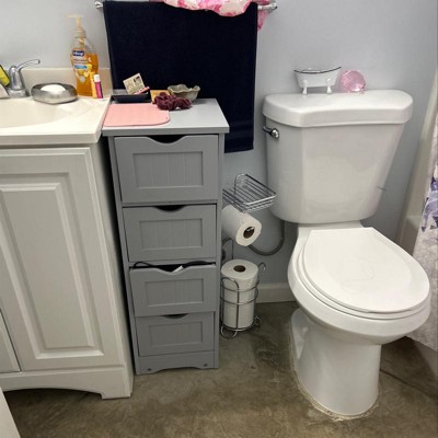 This Storage Cabinet Bathroom Organizer features 4 drawer perfect for towels, medicines, and a variety of other toiletries.This elegantly crafted Storage Cabinet Bathroom Organizer is made from rugged MDF carefully coated in a soft white finish that brightens up any bathroom.And the well-made wooden frame along with eco-friendly varnish provides strong stability and sturdiness, the healthy finish is waterproof, mildew-resistant and wear-resistant that will do no harm to our body.The Storage Cabinet Bathroom Organizer is easy to assemble . Don't hesitate to buy it!