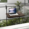 Have a smaller deck where I have to be strategic with space - this is amazing! I can now work outside and fold it down when I'm done. Doesn't scratch my railing and adjusts to a thin railing - sturdy, pretty and great! Easy to put together!