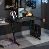 - Spacious Carbon Fiber Desktop: The 43.5'' x 23.5'' spacious tabletop provides ample space to hold your laptop, monitor, keyboard, books and other desk accessories. Besides, covered with high quality carbon fiber texture, the tabletop surface is waterproof, scratchproof and skin-friendly, offering you a better gaming experience.