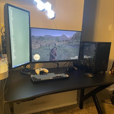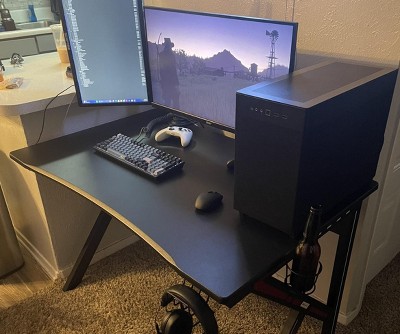 Great desk for the price. Simple yet functional in design which is what I was looking for. I didn’t want rgb or a fancy over the top design. Took 20 minutes or so to put together and seems to be extremely sturdy. We have 3 other gaming desks in the house and this one is by far the best. The headphone holder and cup holder are a nice plus as well.