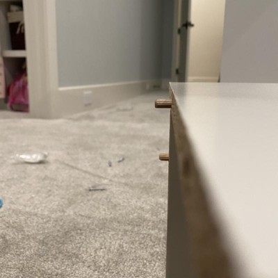 I bought this desk for my elementary aged daughter and we were both very exited for it. However, this desk is very poor quality. The color is very mismatched with some pieces a bright white and others an off-white making it took very cheap. There were visible marks/scratches on some pieces as well right out of the box. Also, the holes drilled for the wooden dowels are not uniform and some aren't deep enough. When putting the pieces together the holes that weren't deep enough caused the dowels to poke through the external board causing visible damage to the other side. The instructions are marginal and not very detailed for some steps. We are deeply disappointed and do not recommend.