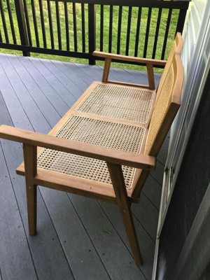 Costway Indonesia Teak Wood Garden Bench 2-Person Bench with Armrests Natural Rattan Backrest & Seat