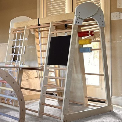 Costway Indoor Playground Climbing Gym Kids Wooden 8 in 1 Climber Playset for Children Multicolor