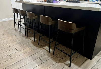 These bar stools are impressive. It took a few minutes to assemble them. The materials are sturdy, solid quality. The look is great, because they are compatible with lots of different styles. I will be using one of these stools for my stand up desk in my home office. Yeah, I know..it sounds odd that I've got a bar stool for a stand up desk, but sometimes I want to be able to sit while I'm on camera, without having to re-adjust the camera and lights in my office.