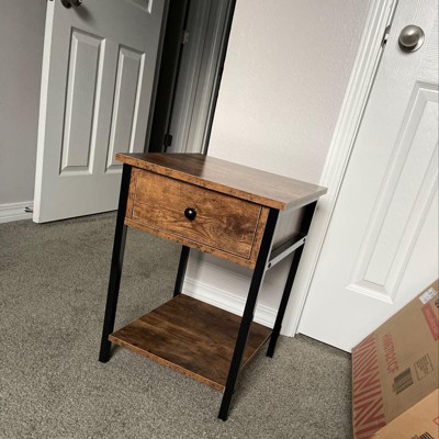 Costway Industrial End Side Table Nightstand with Drawer Shelf Rustic Brown