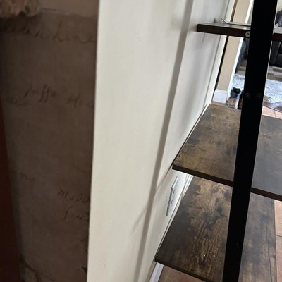 It looked sooo nice…in the picture! I was excited to finally buy a leaning ladder bookshelf. I’ve seen these and have the perfect spot that it would have looked so nice in my living room. I unboxed it, the metal poles were nice & they were very easy to put together. The shelves which were real nice looking, by myself were tricky to put on. Balancing it to put the screws in. In all not very difficult to put together. After all that, it’s crooked. It does not line up evenly against the wall. One of the poles doesn’t sit on the wall. The top shelf didn’t touch the wall. The second shelf sits perfectly up against the wall. The 2 bottom shelves touch the wall on one side and not the other. I returned it, still put together.
