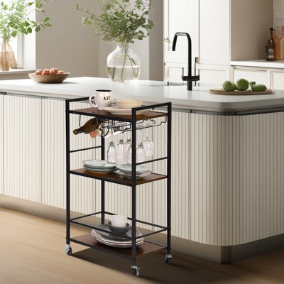 Costway Industrial Liquor Bar Cart Rolling Kitchen Serving Cart w/ Rack Glass Holder