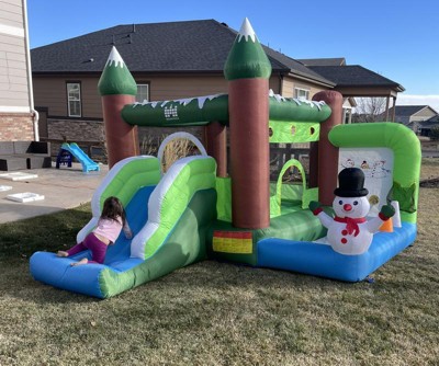 Costway Inflatable Bounce House Christmas Snowman Theme with Slide Ball Pit Basketball Rim with 680W Blower Carry Bag