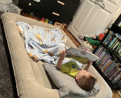 Multipurpose inflatable toddler bed for camping, vacations, sleepovers, and more