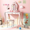 Costway Kids Vanity Set Princess Makeup Dressing Table and Chair Set with Jewelry Armoire White/Pink