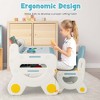 - Multiple Storage Options: This activity table set for children includes a built-in bookshelf, tablet holder/pen slot and under-desk storage for kids' belongings. By the way, the storage shelf under the desktop features a concave design that avoids hitting kids' knees.