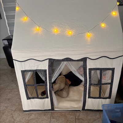 This large playhouse is the perfect space for my toddler. The star string lights make it feel like a special hideaway!