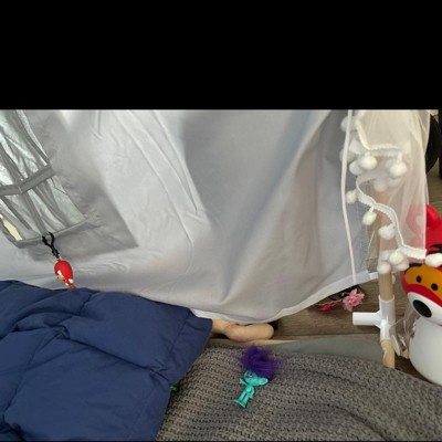 This tent is cool but it does not stay together at all. The kids enjoy it but it’s not attached where it is supposed to be to be. The wood pieces keep coming apart randomly. It is a cool design and the kids enjoy it that’s the only reason why I am keeping it but if I found another one honestly I would change it. I have not seen a better tent yet at target.