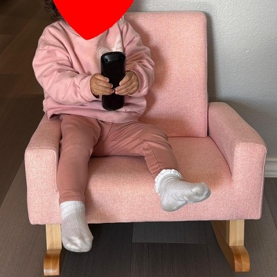 Costway Kids Rocking Chair Children Armchair Linen Upholstered Sofa w/ Solid Wood Legs Blue