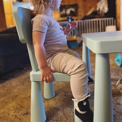 Could this little table and chair set be any cuter? No! I ordered it because it was $150 off. I love pale pink. Our granddaughters adore tea parties. It is sturdy and nice area on top to play with anything one could imagine. Chair legs were a bit of a challenge, nothing insurmountable. I sat on a chair also at 140 pounds, no worries. Are you having withdrawal after Christmas shopping like me? Purchase this darling table with two chairs for a quick cheer up! Retail therapy at its best. It also comes in white and pale blue. But pink is the best!