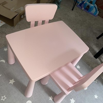 Could this little table and chair set be any cuter? No! I ordered it because it was $150 off. I love pale pink. Our granddaughters adore tea parties. It is sturdy and nice area on top to play with anything one could imagine. Chair legs were a bit of a challenge, nothing insurmountable. I sat on a chair also at 140 pounds, no worries. Are you having withdrawal after Christmas shopping like me? Purchase this darling table with two chairs for a quick cheer up! Retail therapy at its best. It also comes in white and pale blue. But pink is the best!