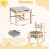The activity table features a reversible tabletop that allows kids to transition between a smooth whiteboard and a classic chalkboard surface. Beneath the table is a large hidden storage compartment for stashing toys, art supplies and books, keeping the play area tidy. Additionally, 2 removable and foldable fabric drawers offer extra space to store items. Adding further convenience, 2 solid wood sticks are positioned inside the desk - serving dual roles as paper roll holders and handy hooks. Crafted from solid wood composite board, this kids table and chair set is built to last. Moreover, the lovely robot-shaped backrest adds a playful touch to any playroom or nursery.