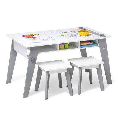 Costway Kids Table & Chair Set 3-Piese Toddler Set w/2 Stools & Activity Table Gray