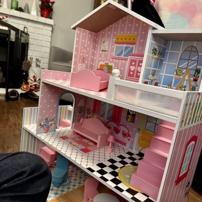 My daughter has been dreaming of a dollhouse like this, and it was totally worth it! She loves the different rooms and enjoys arranging the furniture in new ways. The door and window details make it even more realistic. I'm happy with the quality and how much she enjoys it.